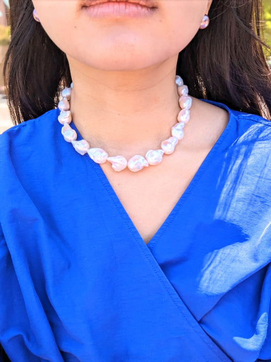 スクエア・ピンク・バロックパール淡水ネックレス 【約22mm】 約40cm