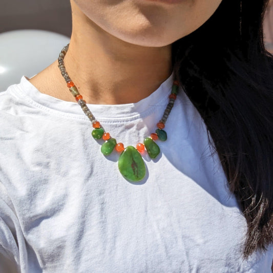 クリソプレーズ・ラブラドライト・カーネリアン エキゾチック ネックレス