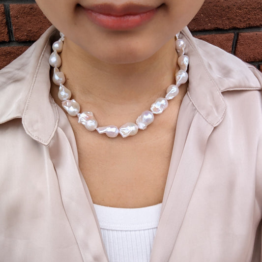 スクエア・ホワイト・バロックパールネックレス 【約22mm】 約40cm