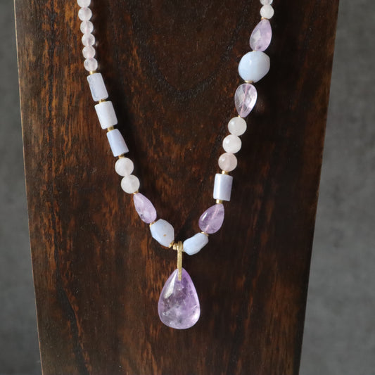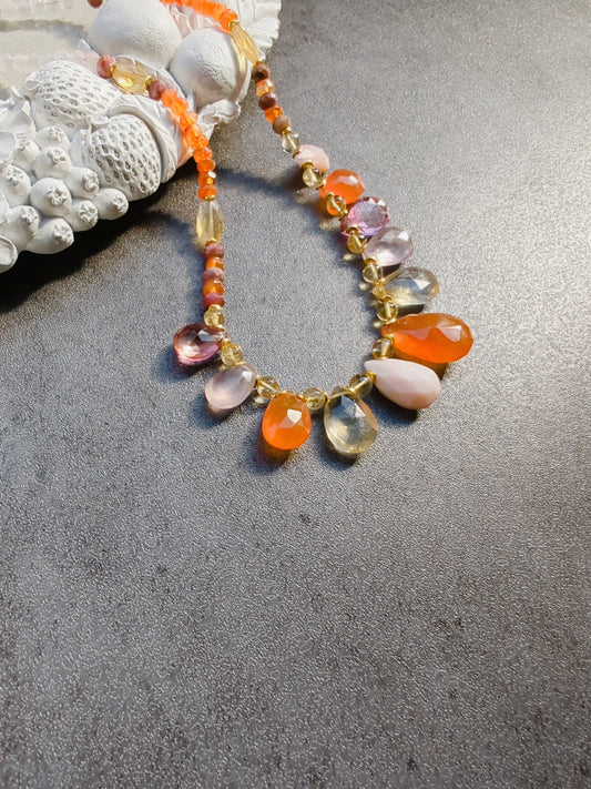ネックレス シトリン・コルナリン・ロードナイト・ローズオパール