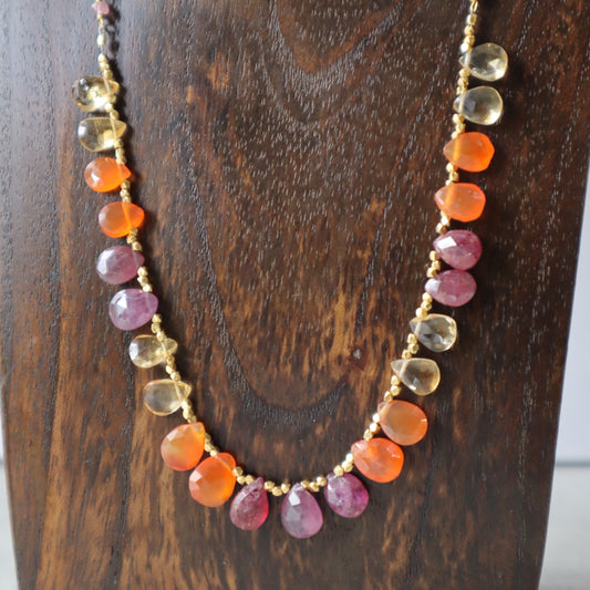 ネックレス 40cm + 5cm ルビー・コルナリン・シトリン