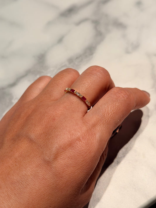 11. YG ルビーxダイヤモンド ハーフエタニティリング
