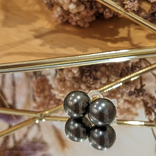 ピーコック ソーティング付き 約10.0mm 黒蝶真珠ピアス 14k