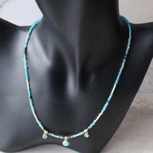 ネックレス 38cm+4cm サファイヤ・アパタイト・トルコ石・ラピスラズリ