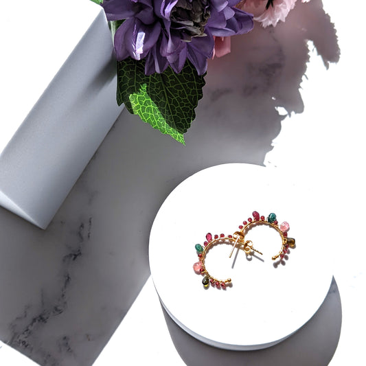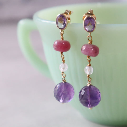 チェーンピアス ルビー・アメジスト・ローズクォーツ
