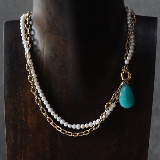 クリソプレーズ・ラブラドライト・カーネリアン エキゾチック ネックレス