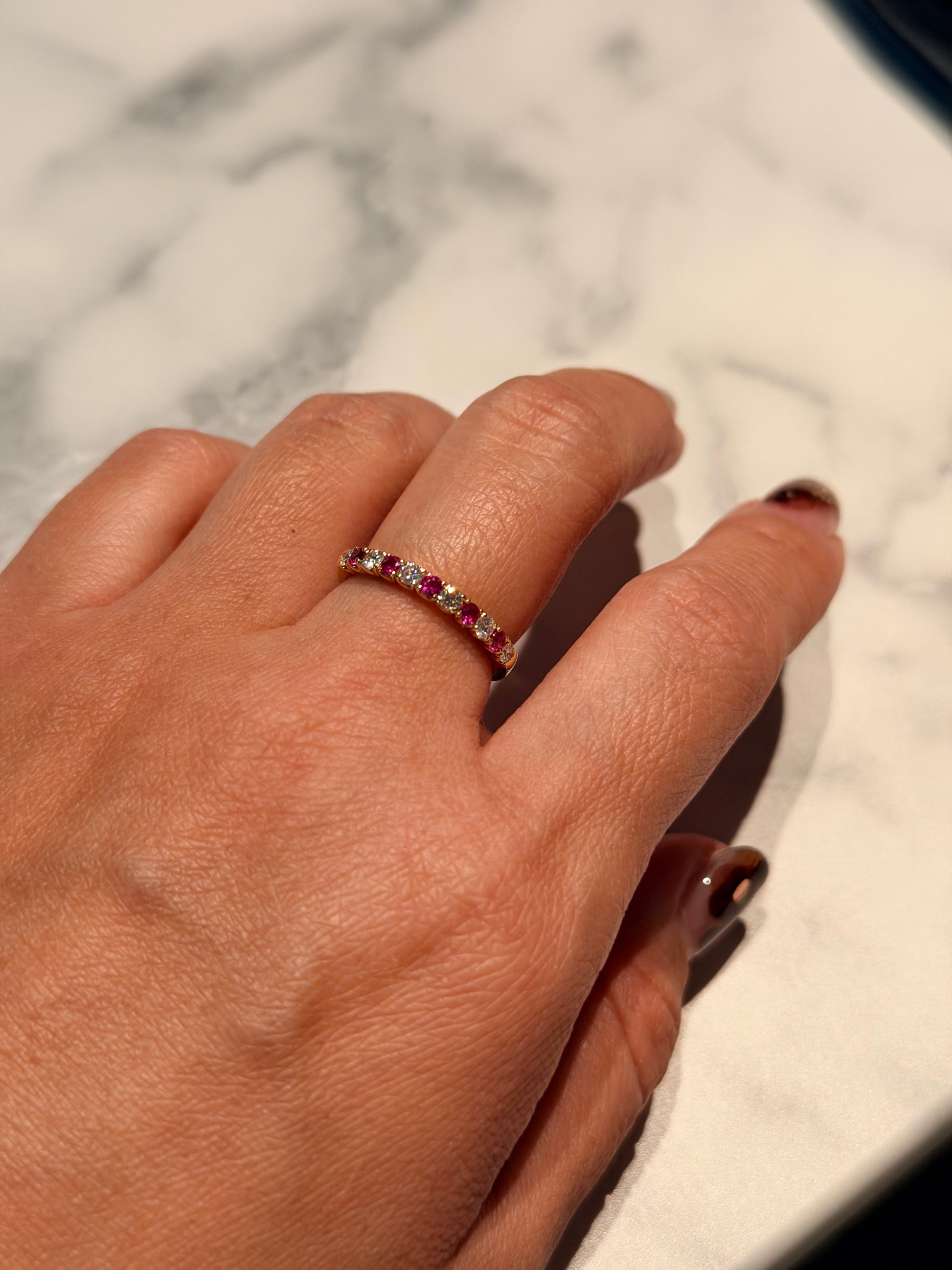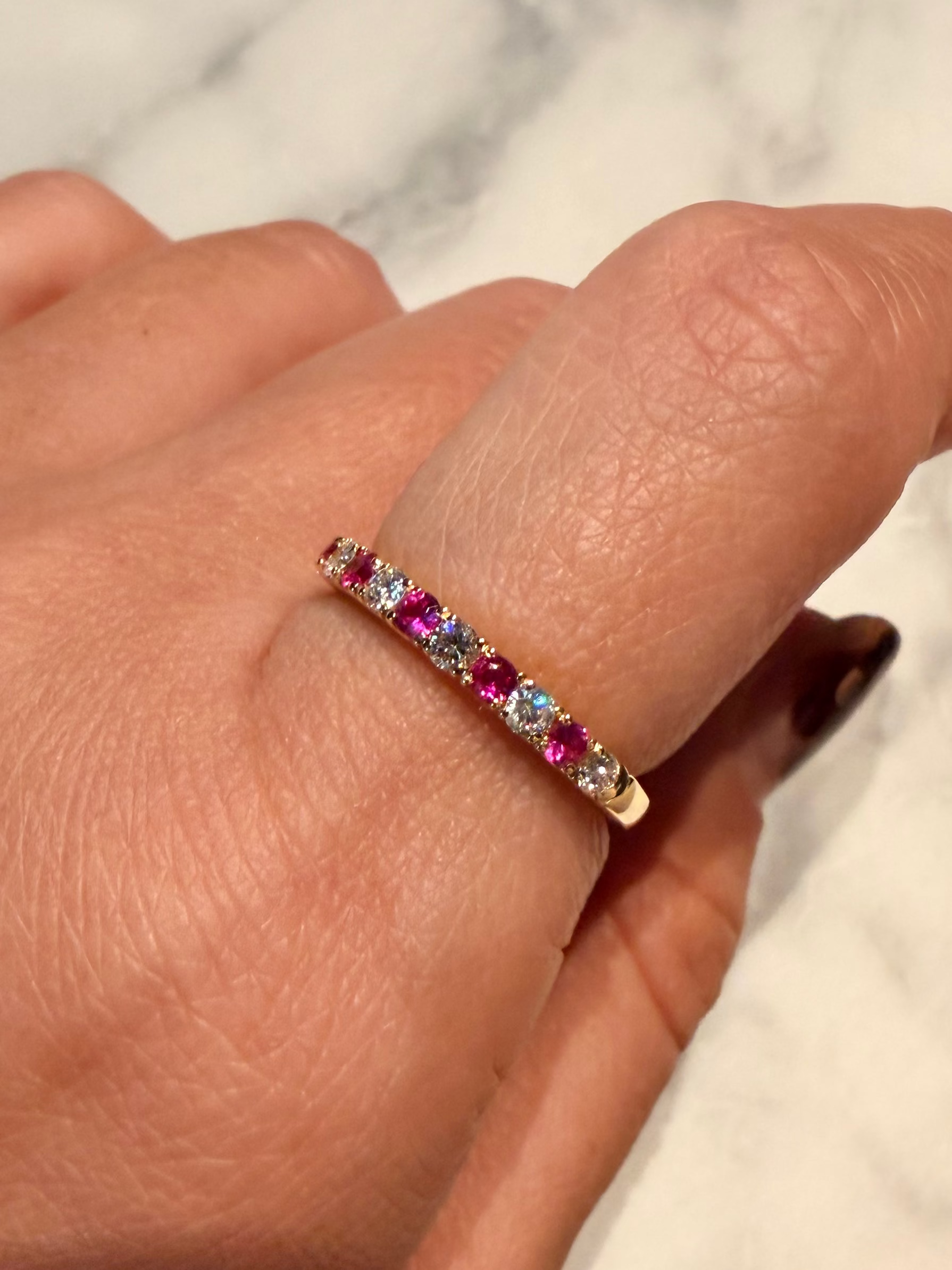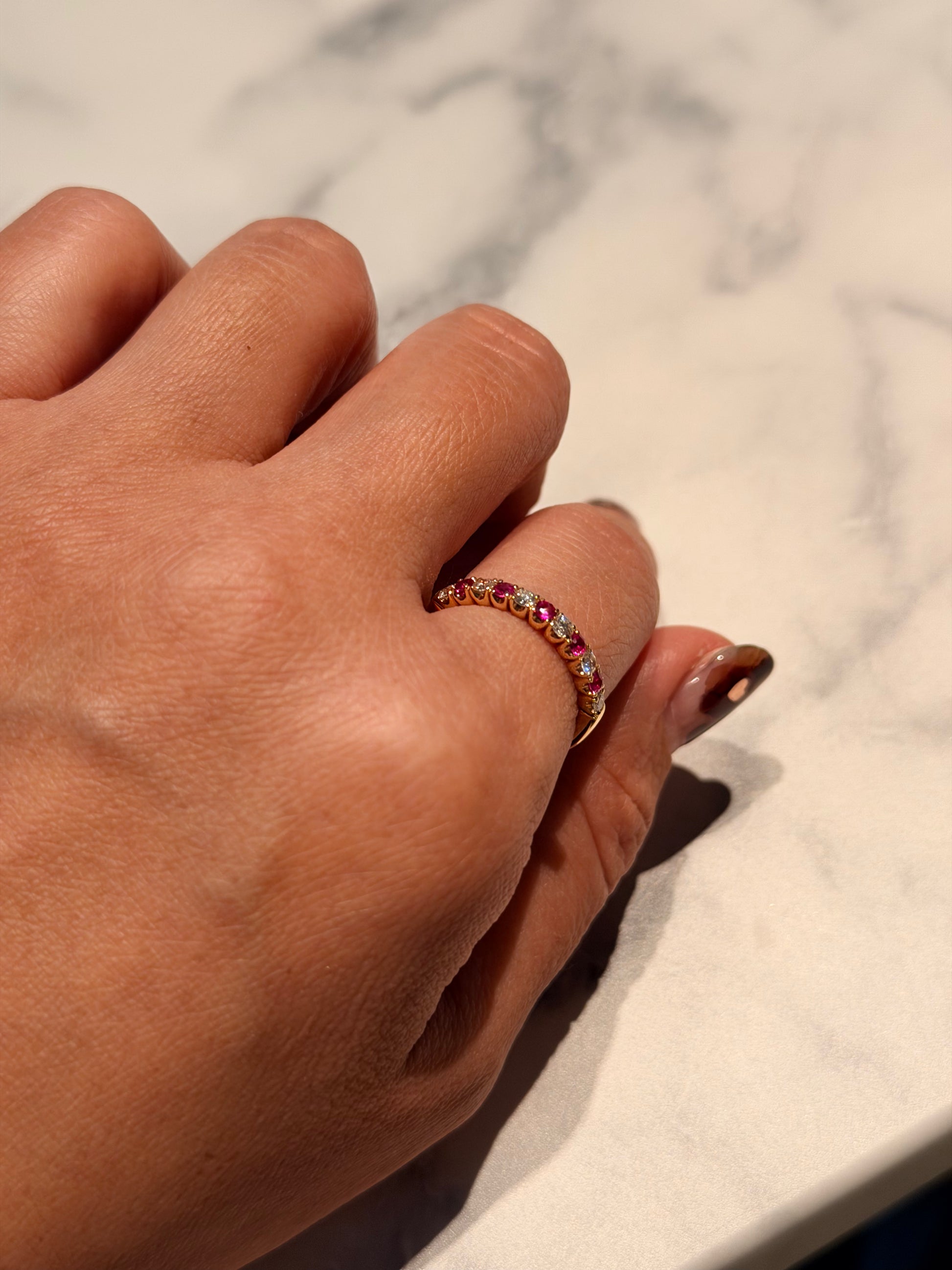 11. YG ルビーxダイヤモンド ハーフエタニティリング