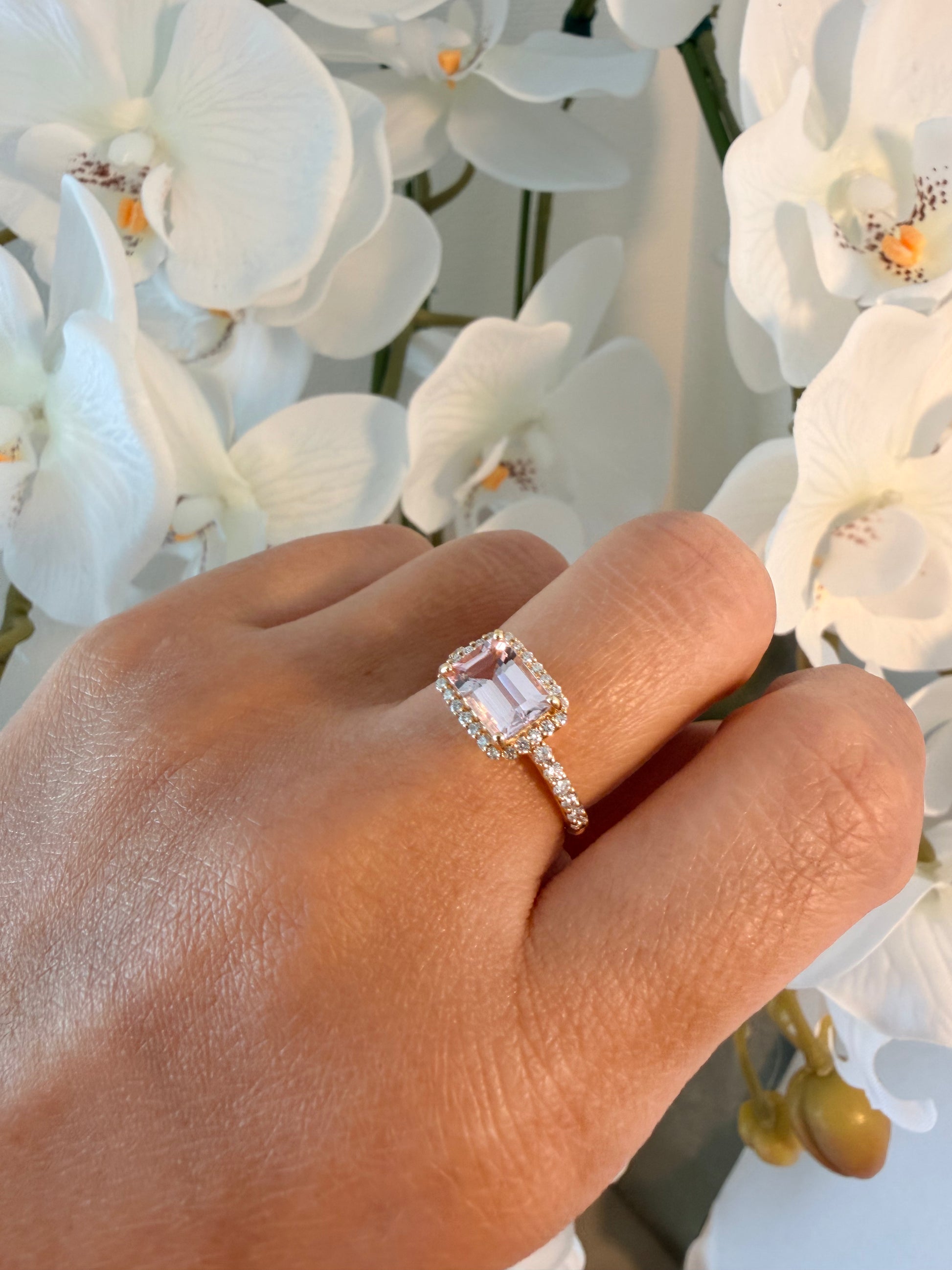 08. YG エメラルドカット モルガナイトリング