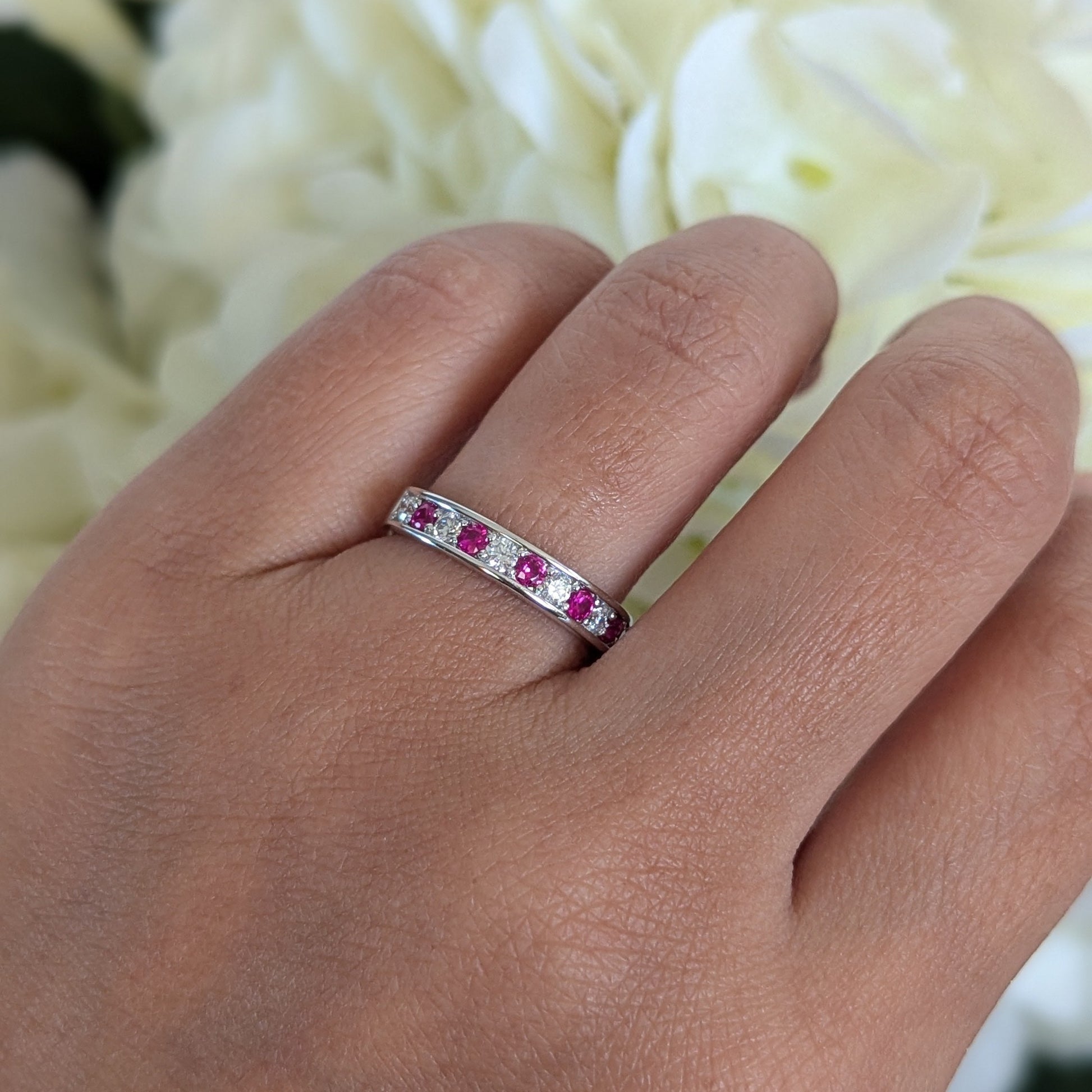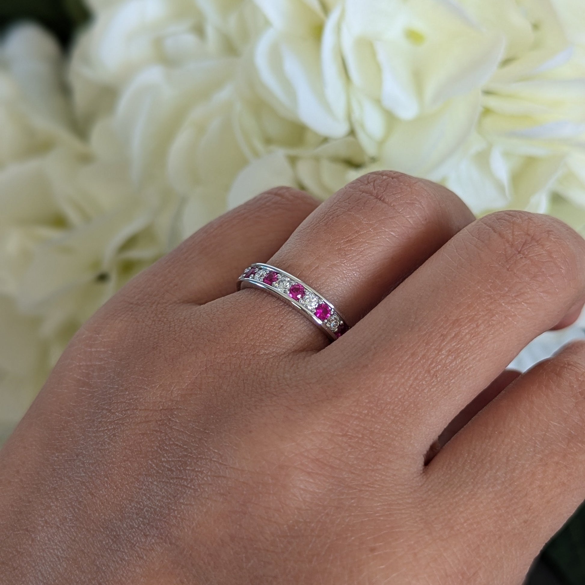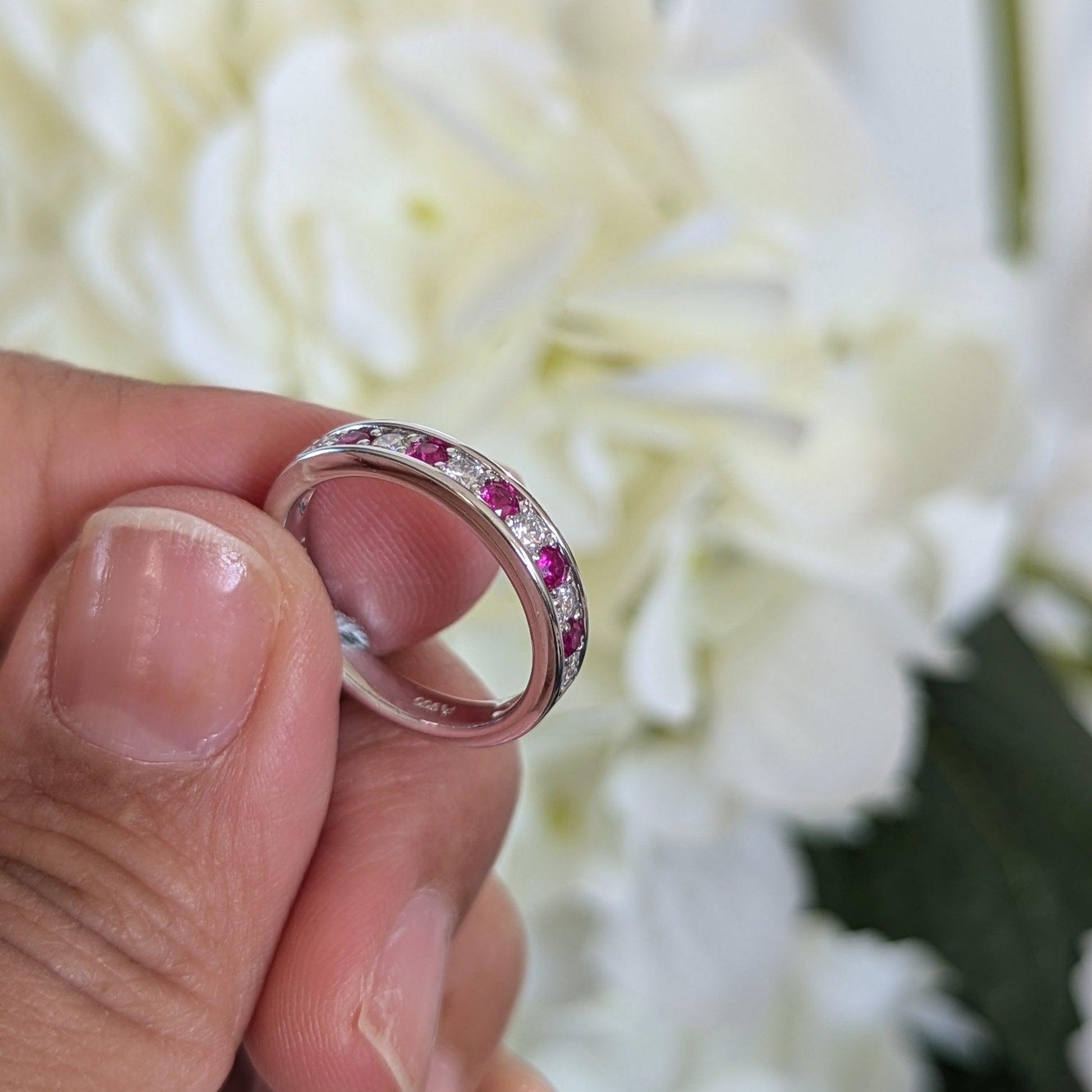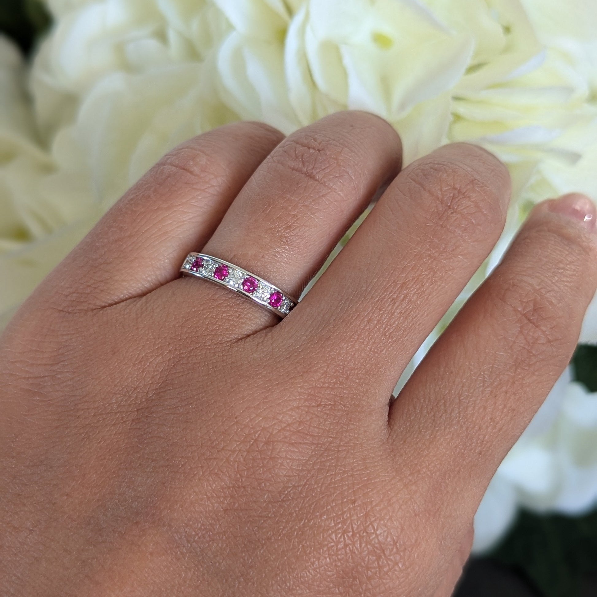 19.【レール留め風・太・約3.5mm幅】ルビーorサファイアxダイヤ・ハーフエタニティリング