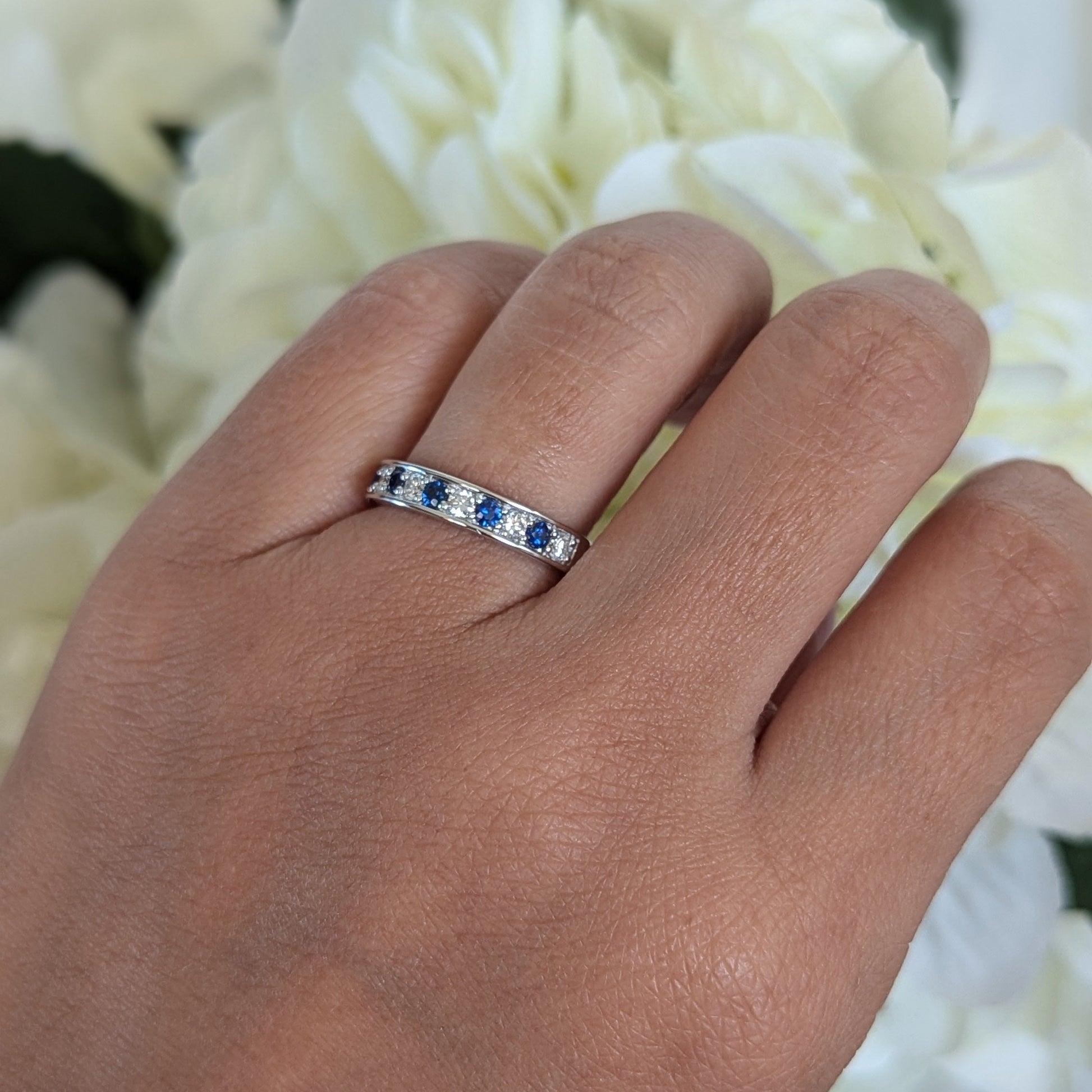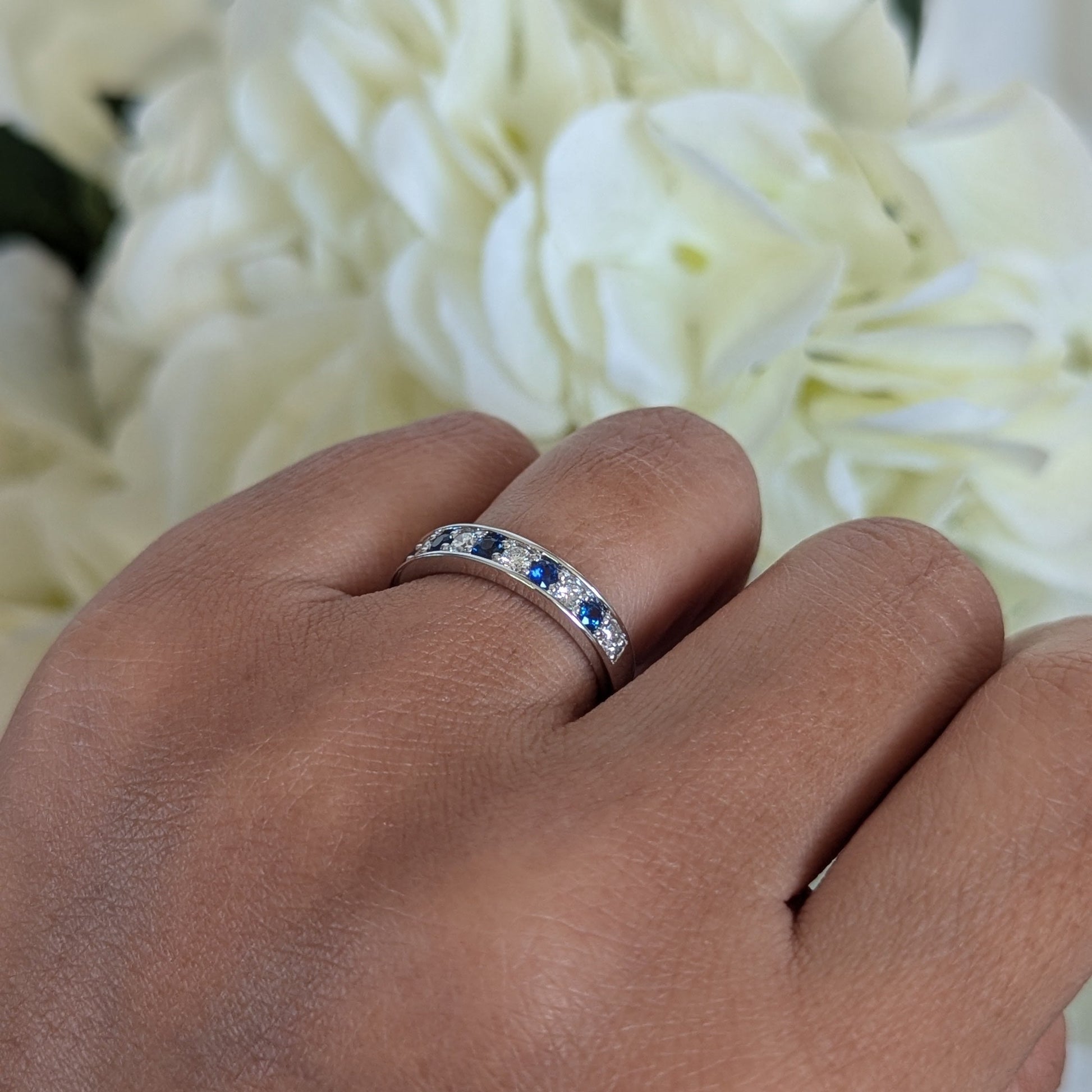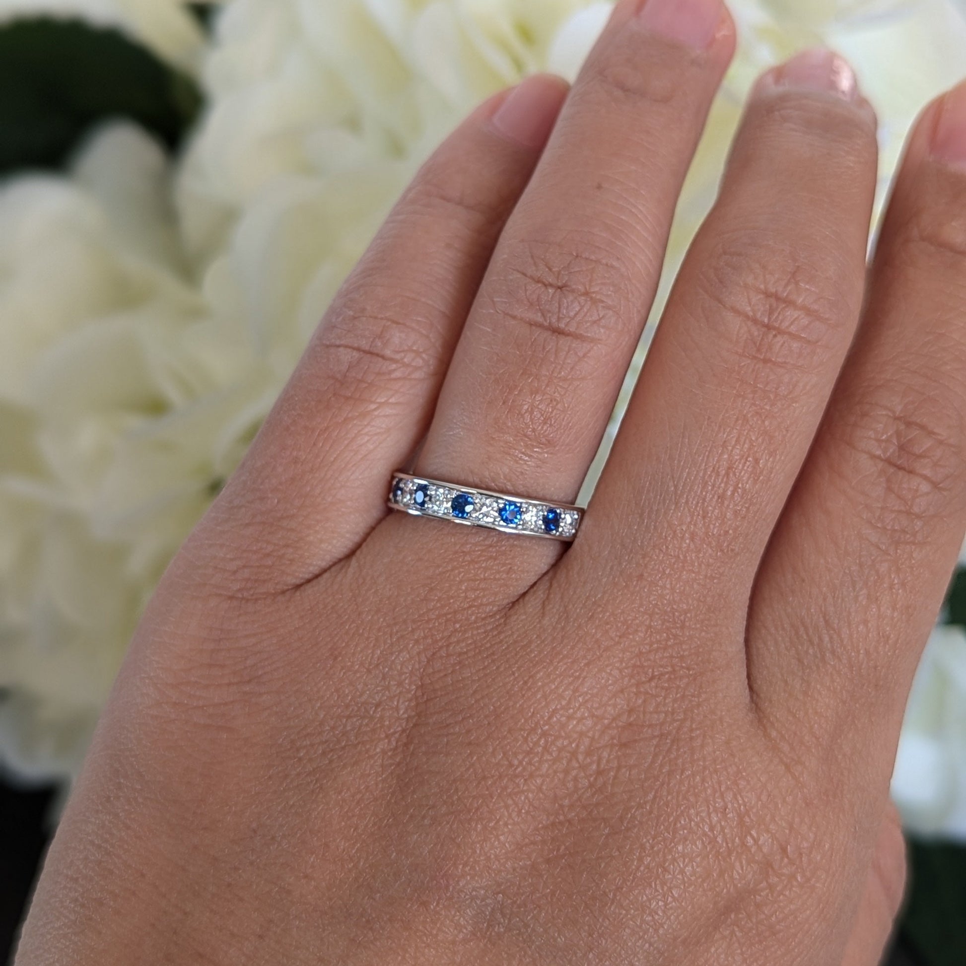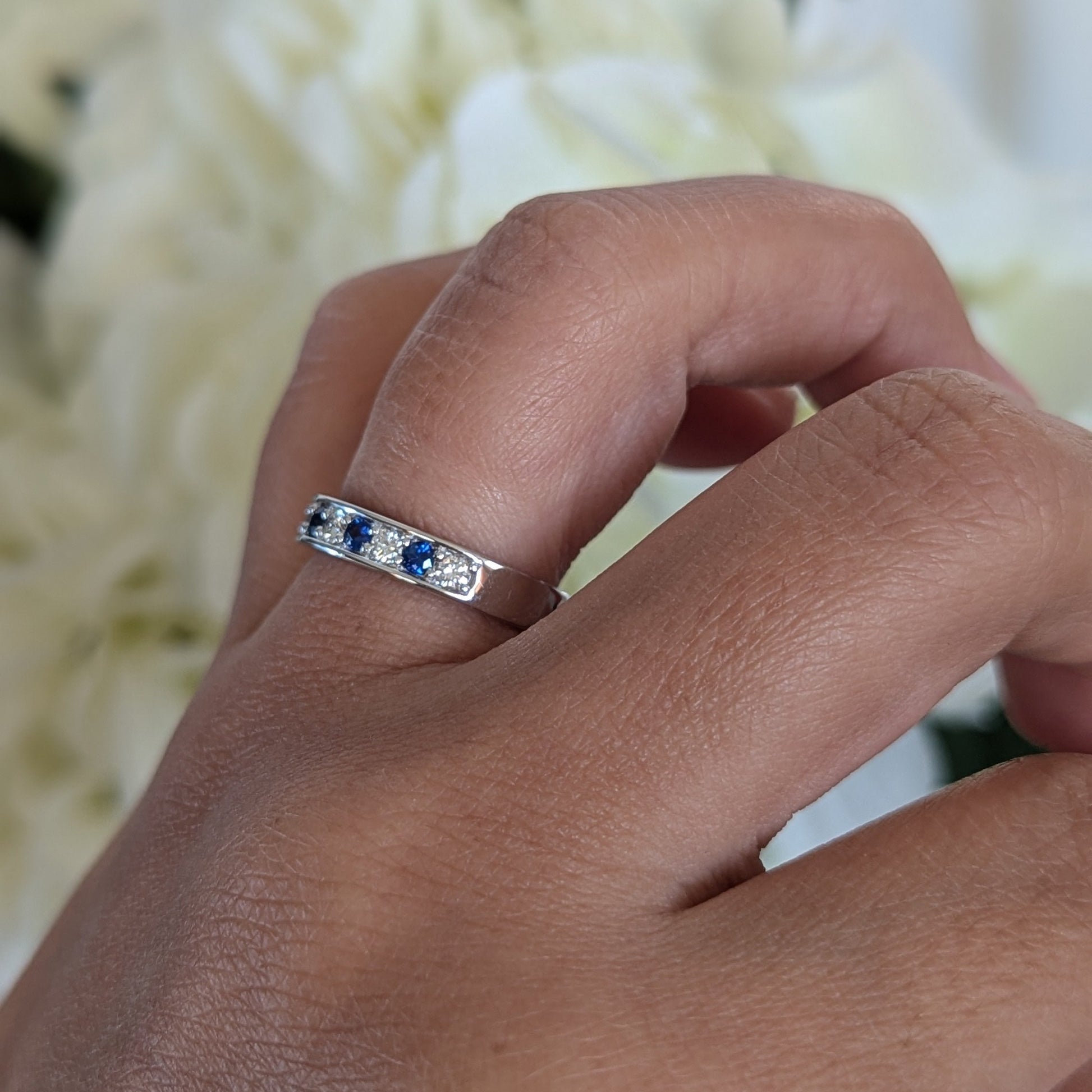 19.【レール留め風・太・約3.5mm幅】ルビーorサファイアxダイヤ・ハーフエタニティリング