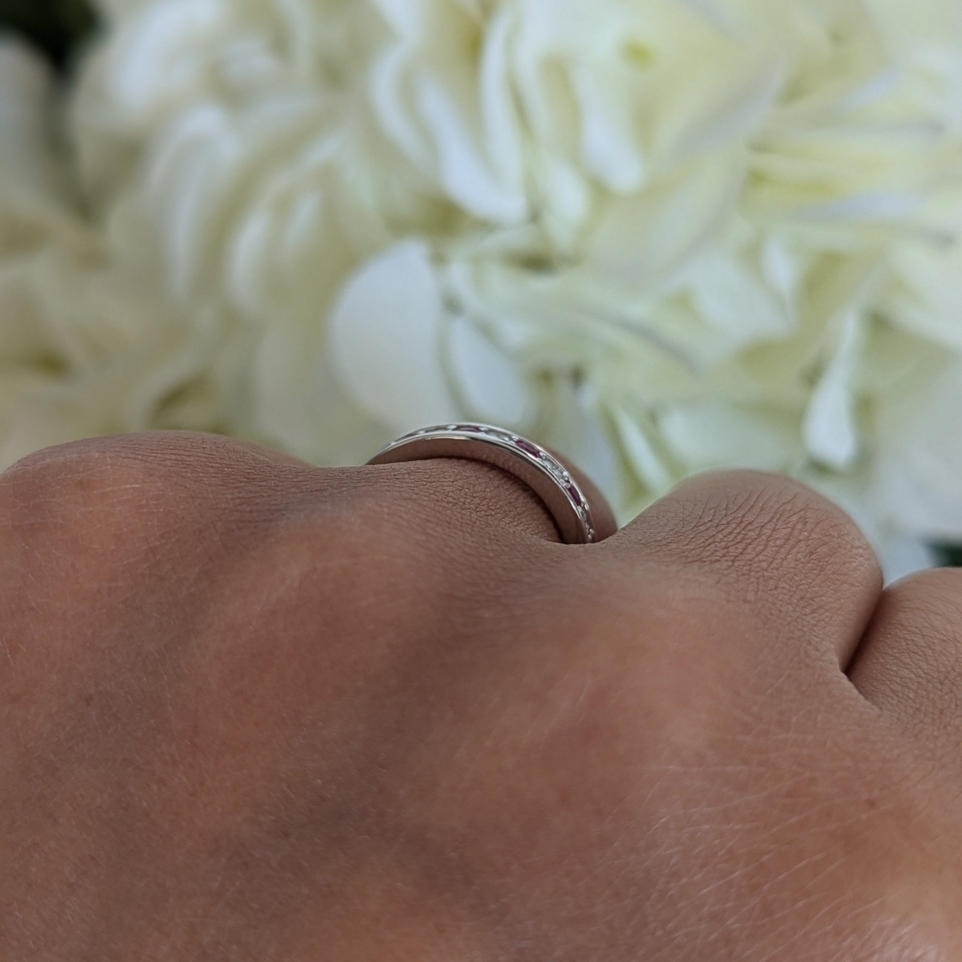 存在感のある、レール留め風3.5mmのハーフエタニティリング。