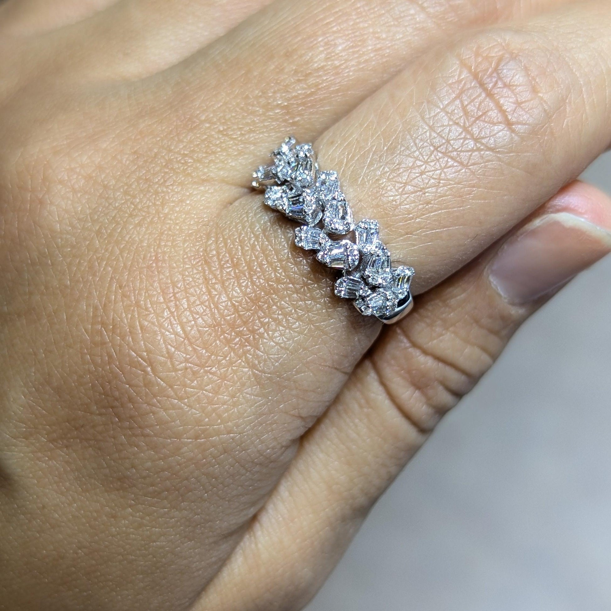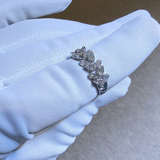 120ピアスは複数のダイヤモンドで構成した立体感が顔周りに奥行きを生むデザイン。
