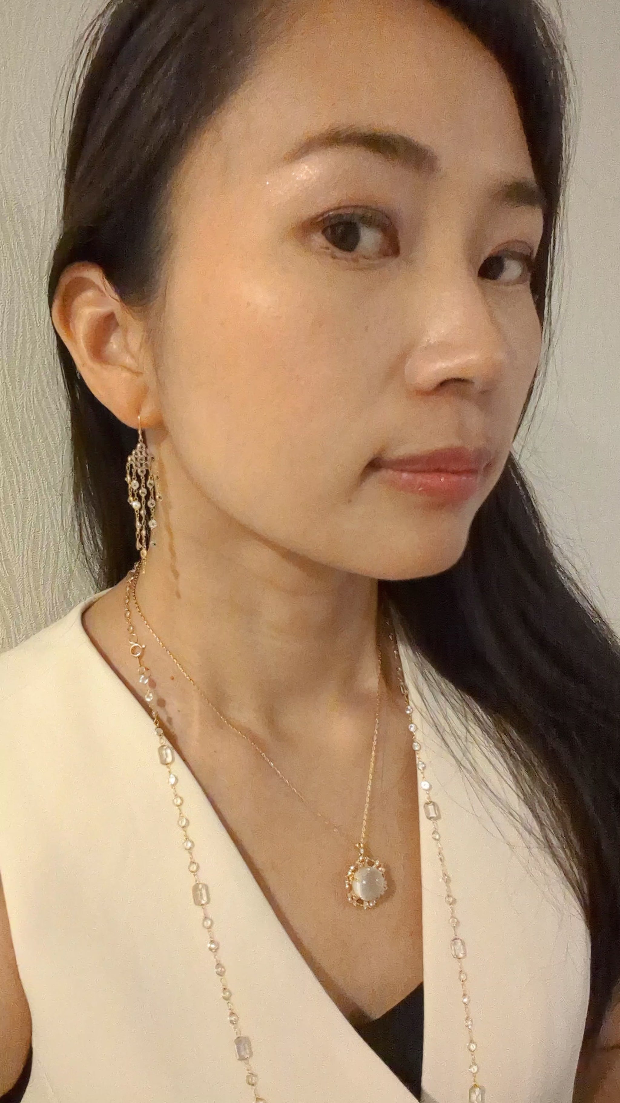 ジュエリーを身につけるのは衣服を着た後、ジュエリーを外すのは衣服を脱ぐ前と心がけてください。ストールやマフラーを外す際も十分お気をつけください。