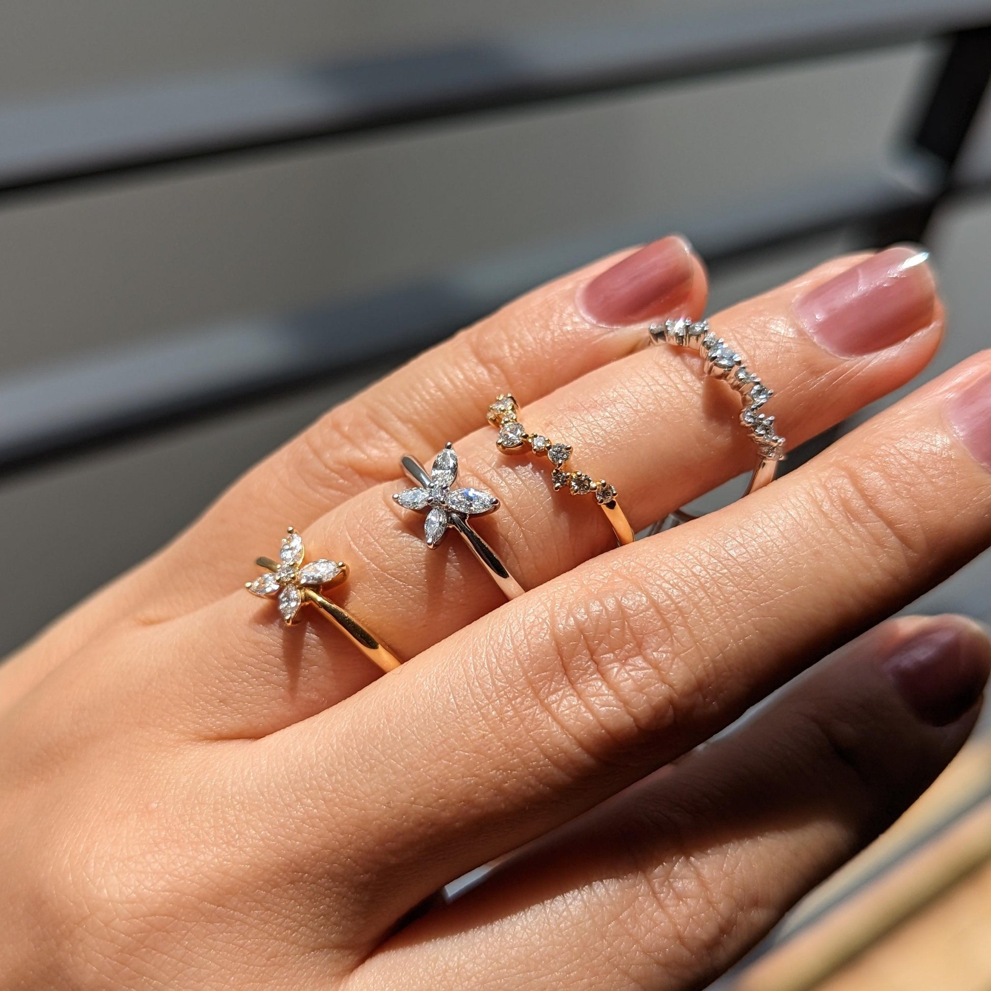 うるうるのマーキスカットのダイヤモンドを配置してお作りしたシンプルなバタフライのシリーズ。