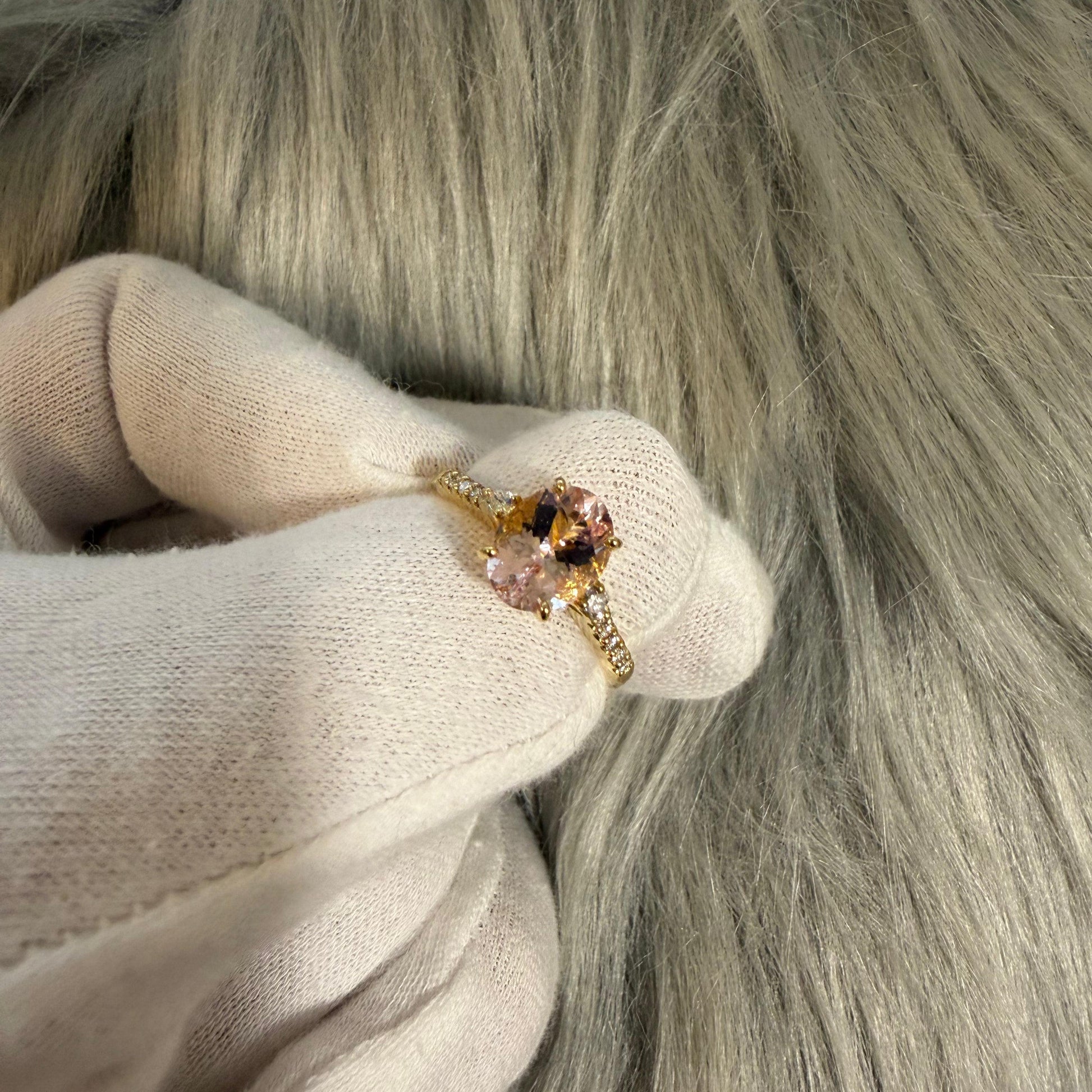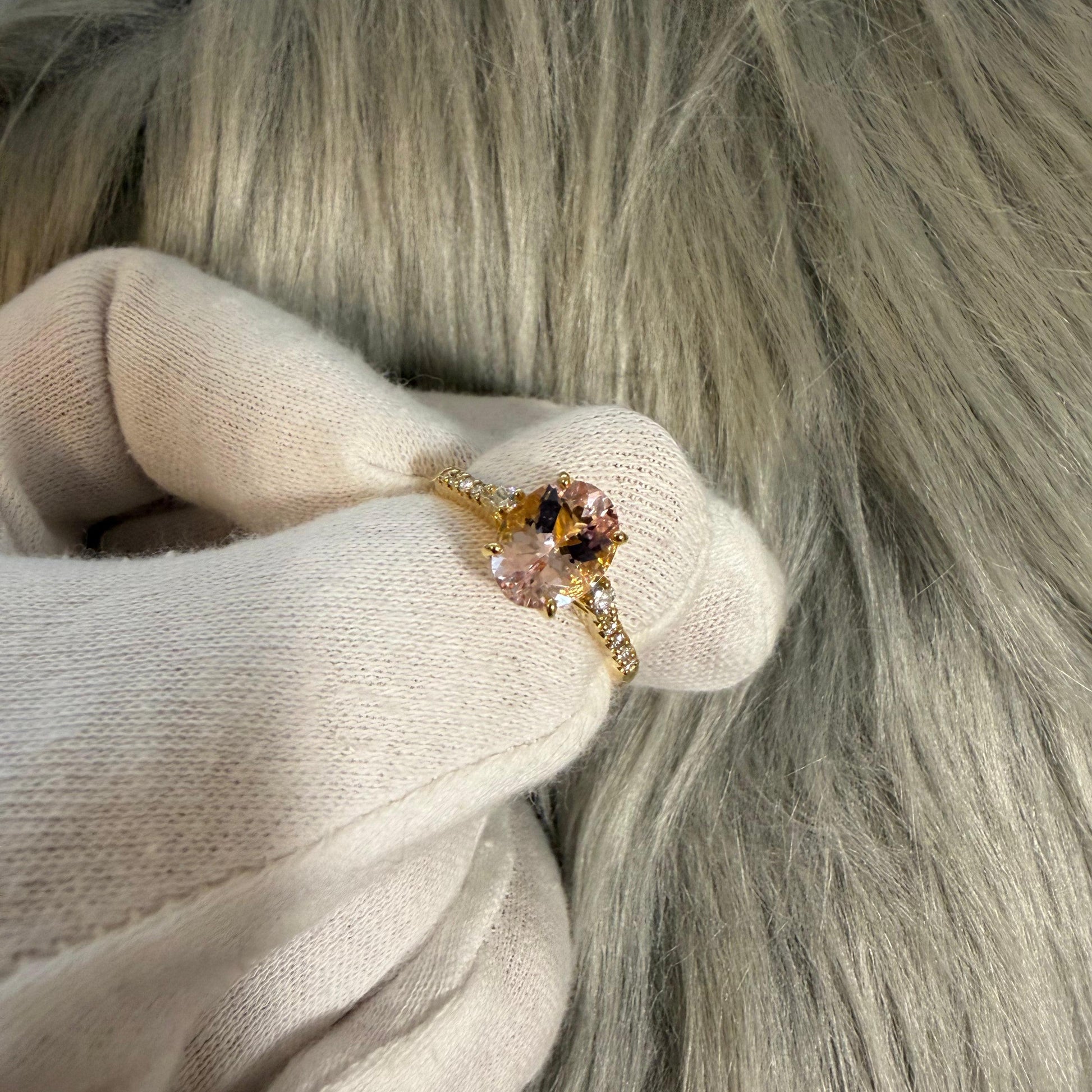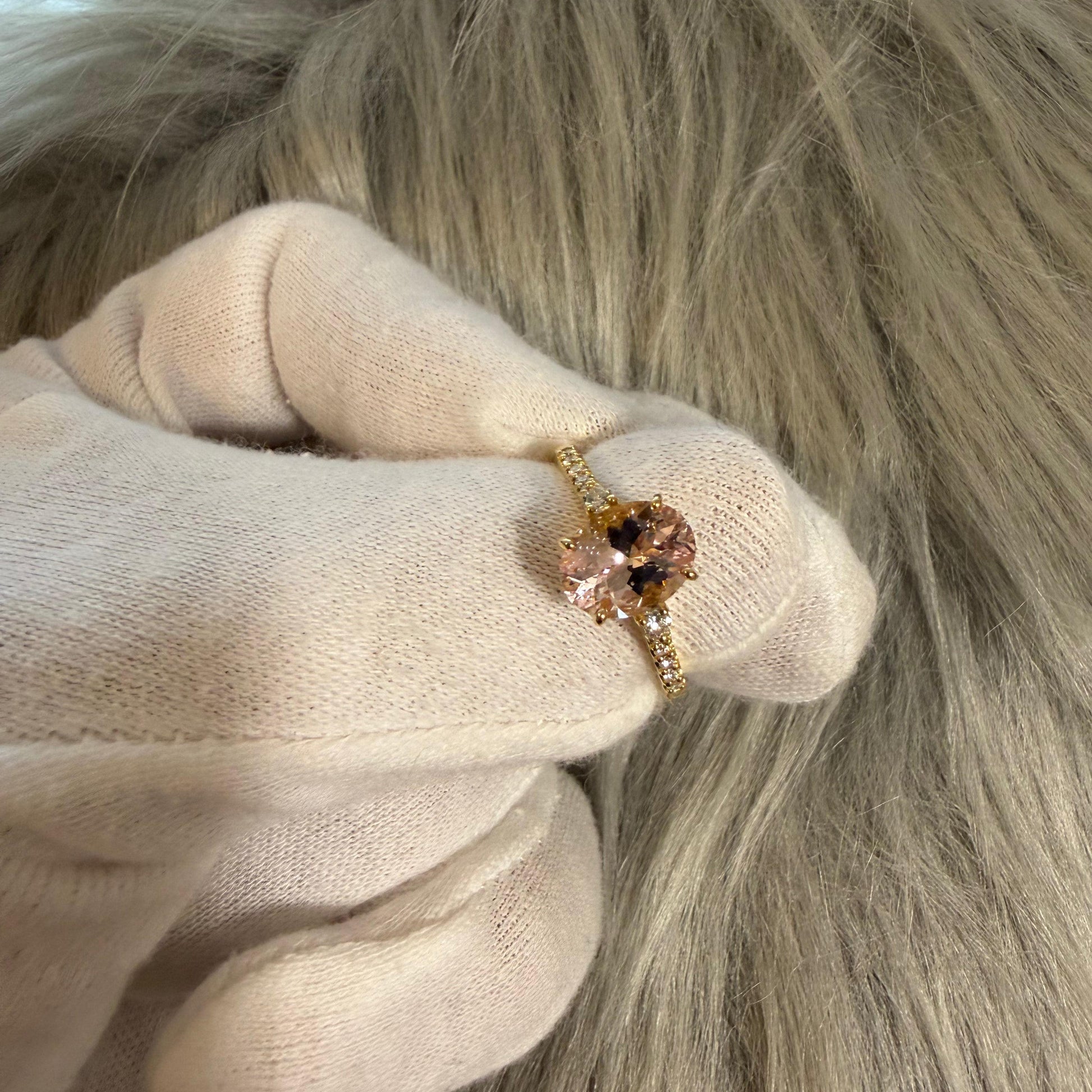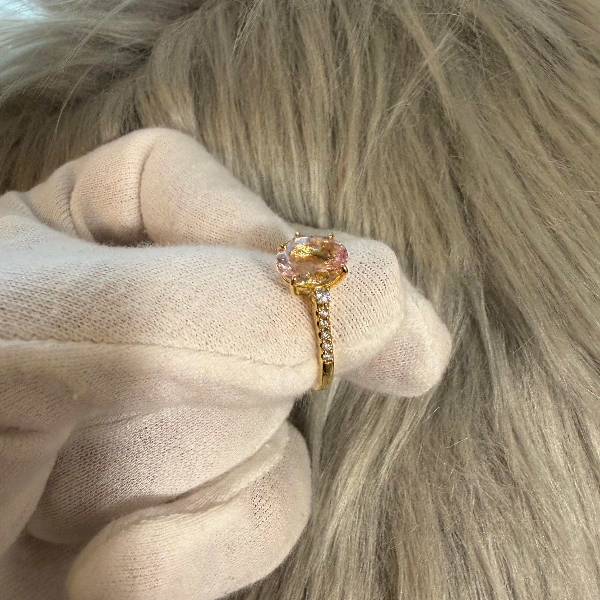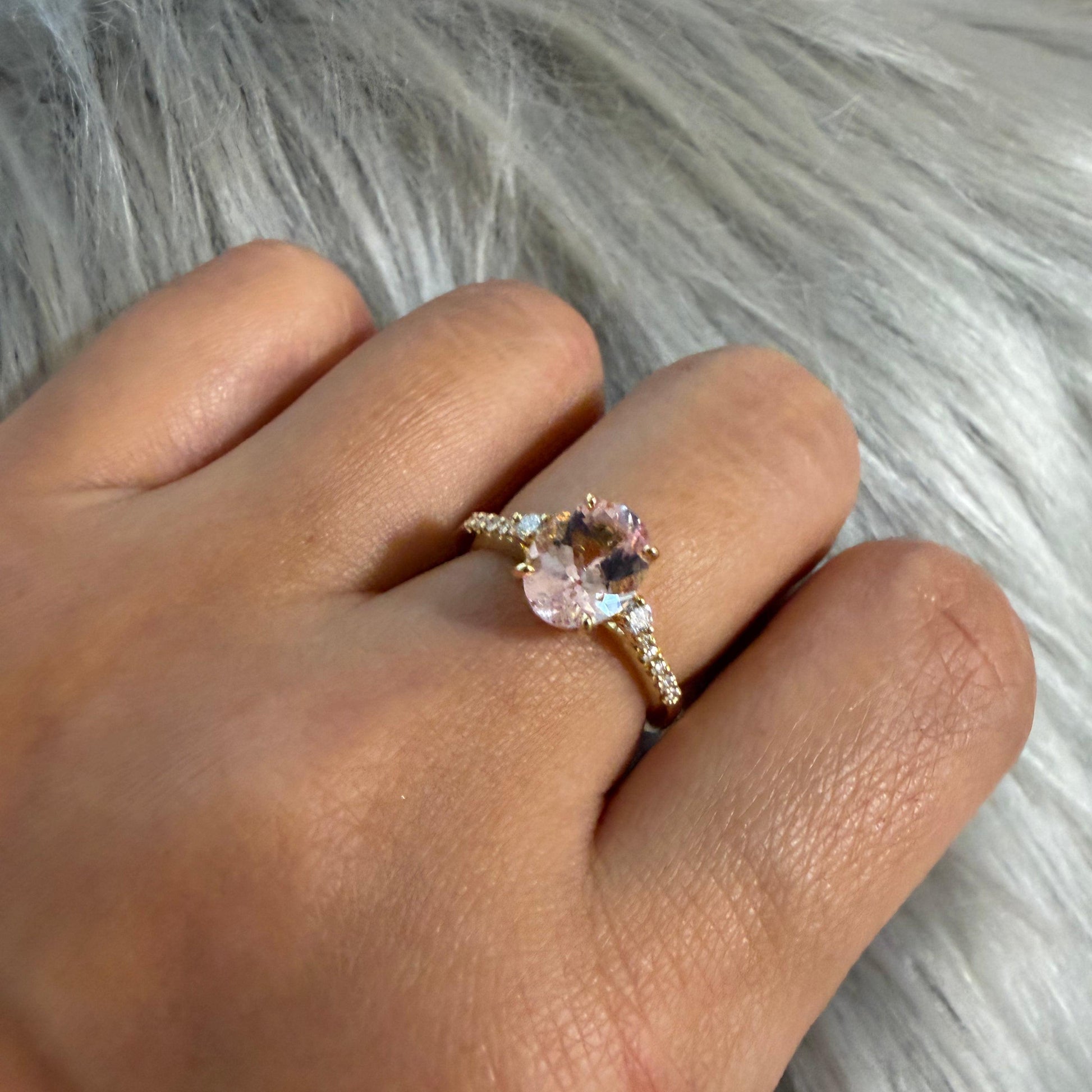 桜色のオーバルシェイプのモルガナイトx細身のアームにダイヤモンドを12石あしらったリング、Dance。