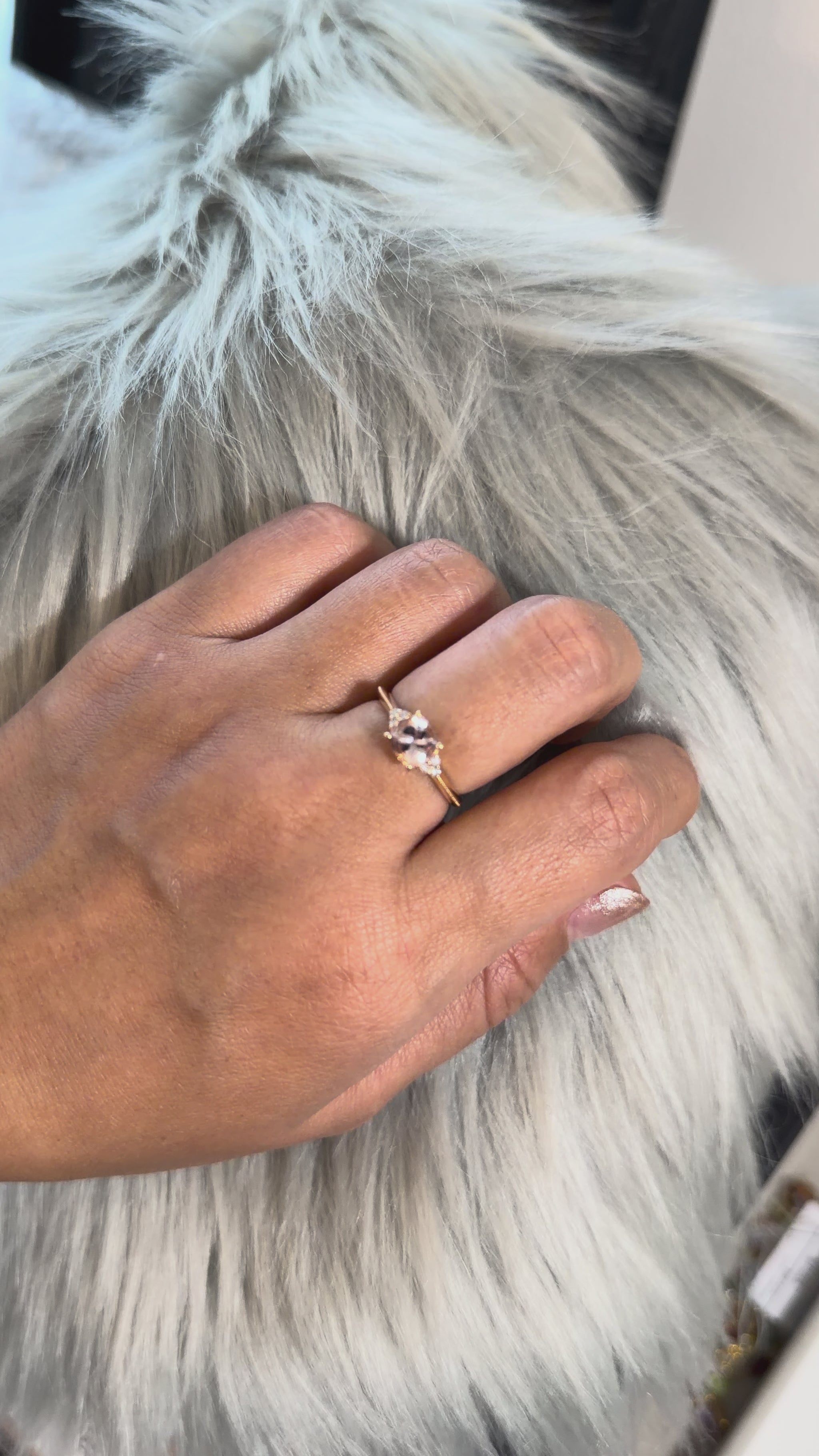 ころんとしたシェイプとモルガナイトの愛らしさで、女心がくすぐられるリングです。