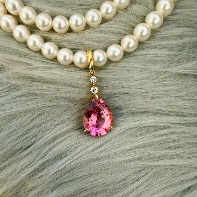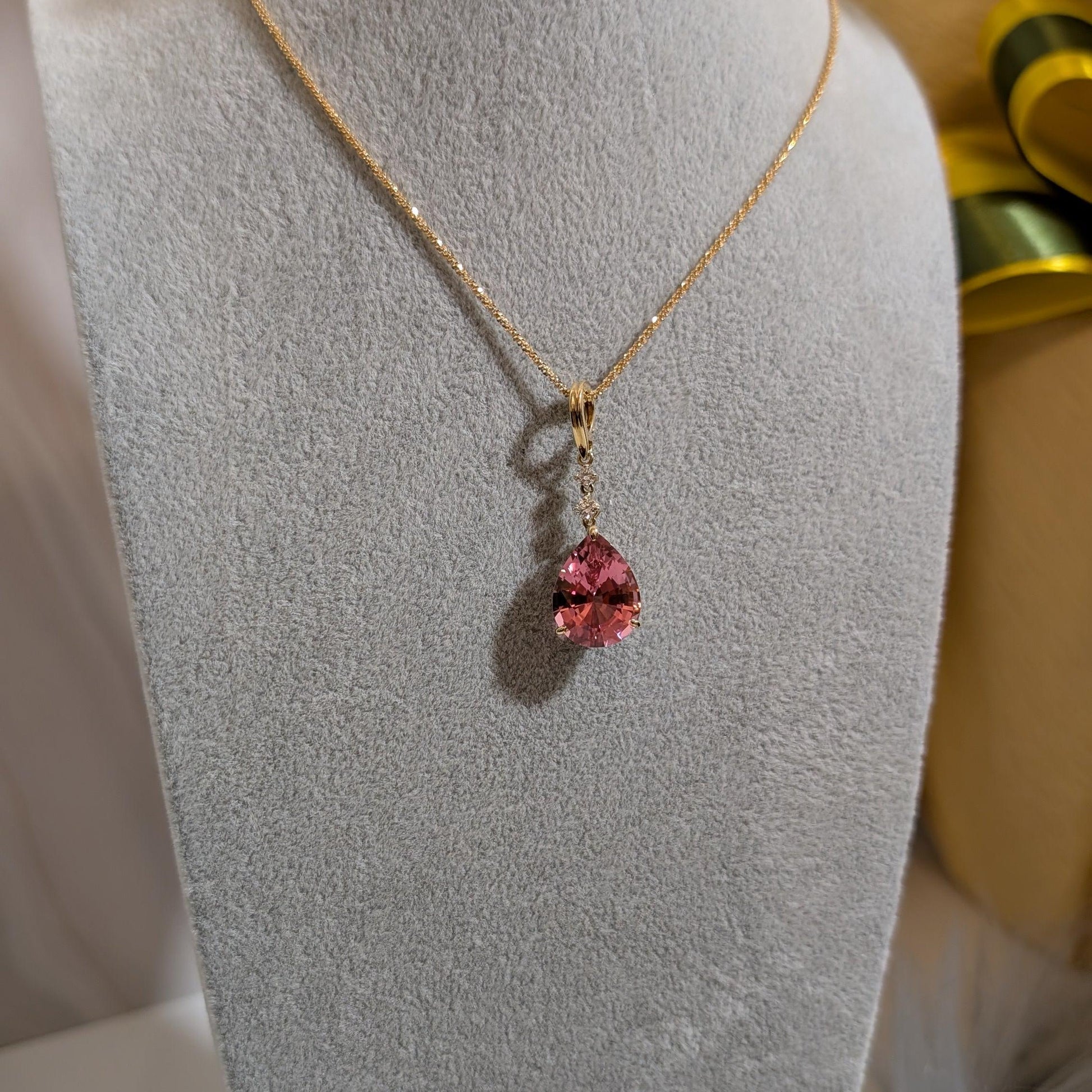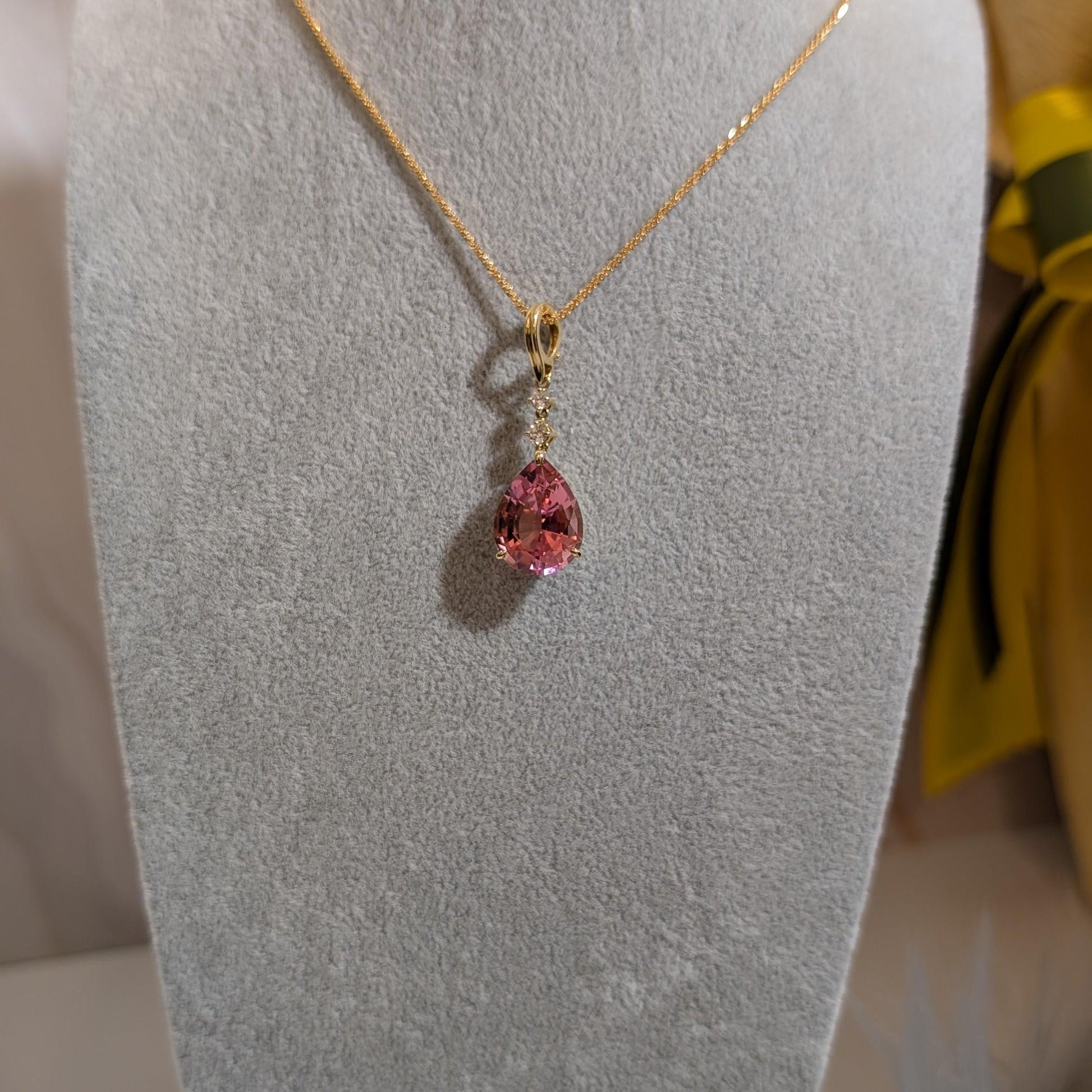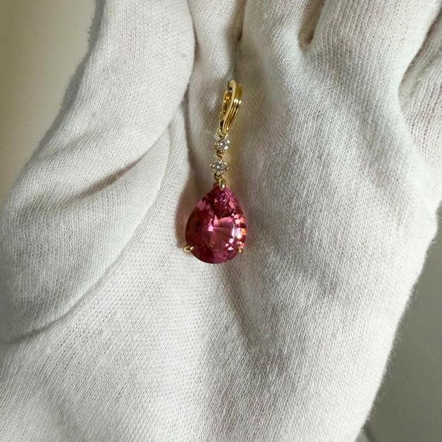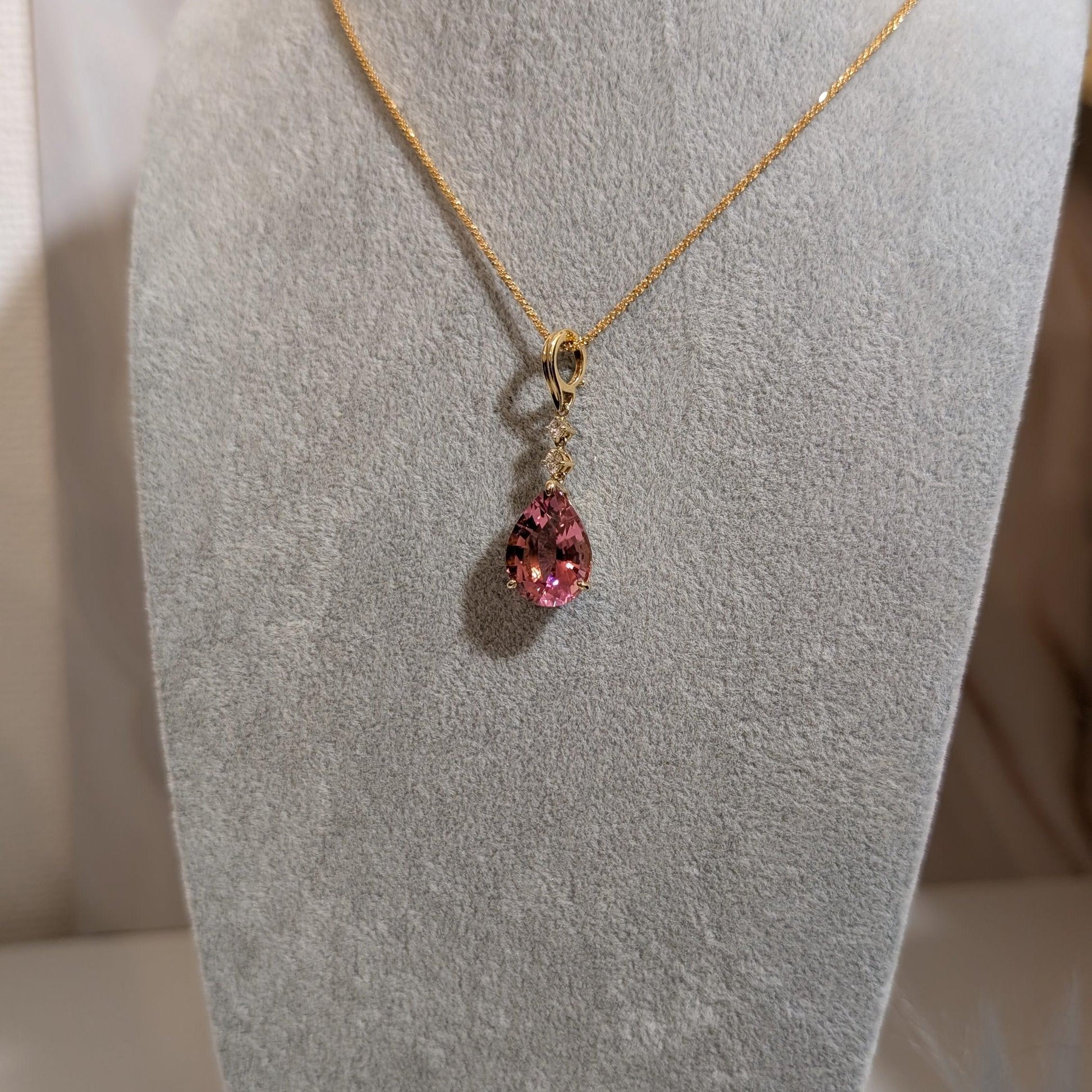 ペアシェイプピンクトルマリン:約14mm x 11.6mm・厚さ8.2mm(台座含む)