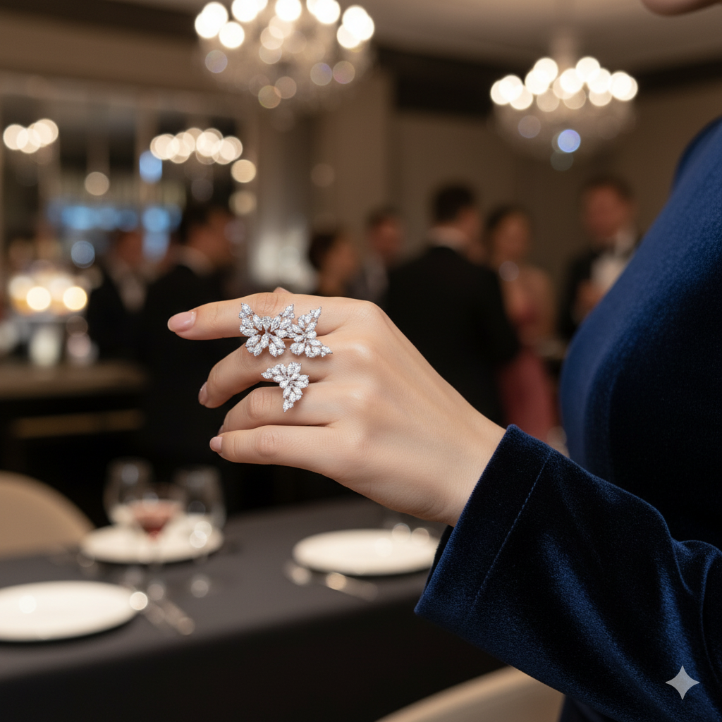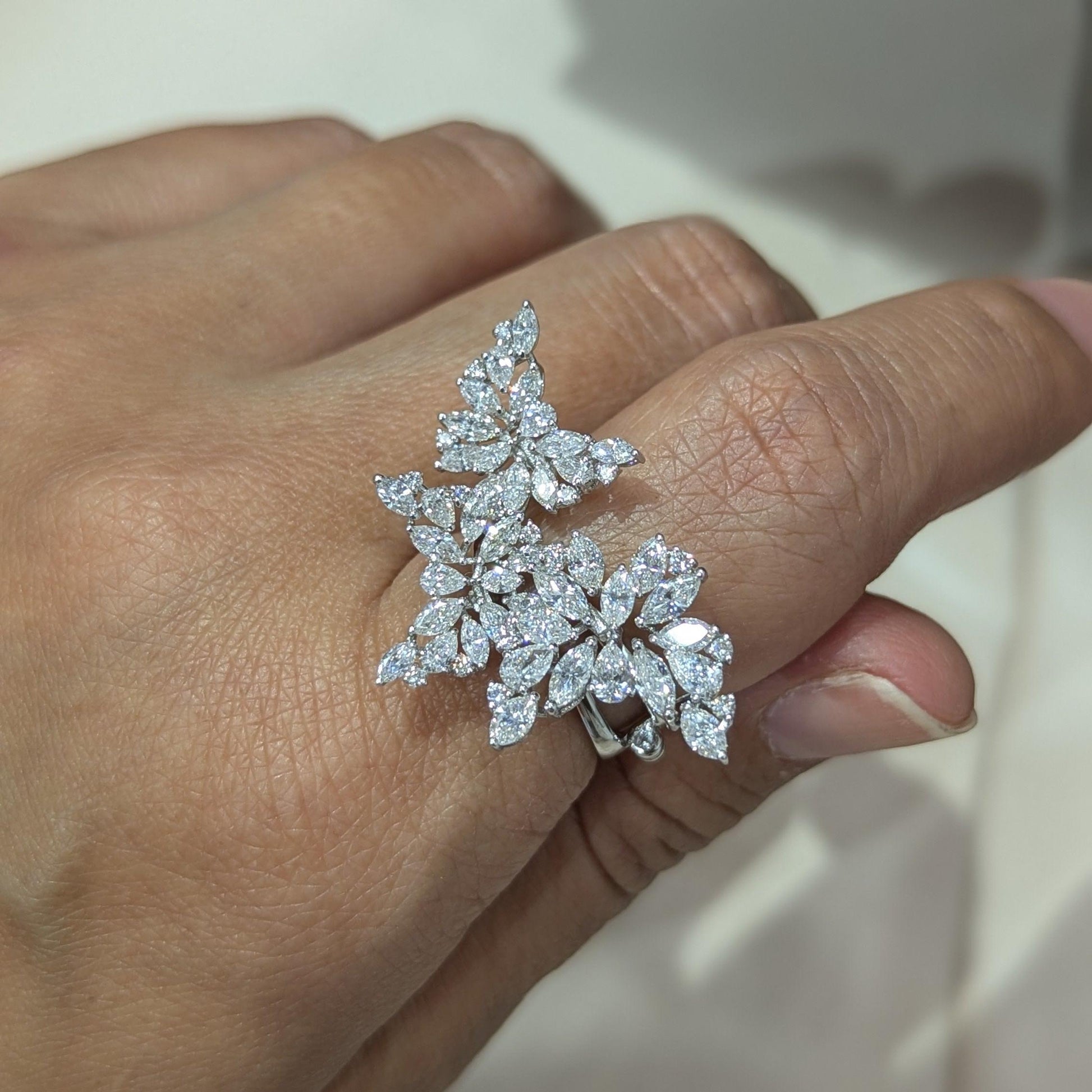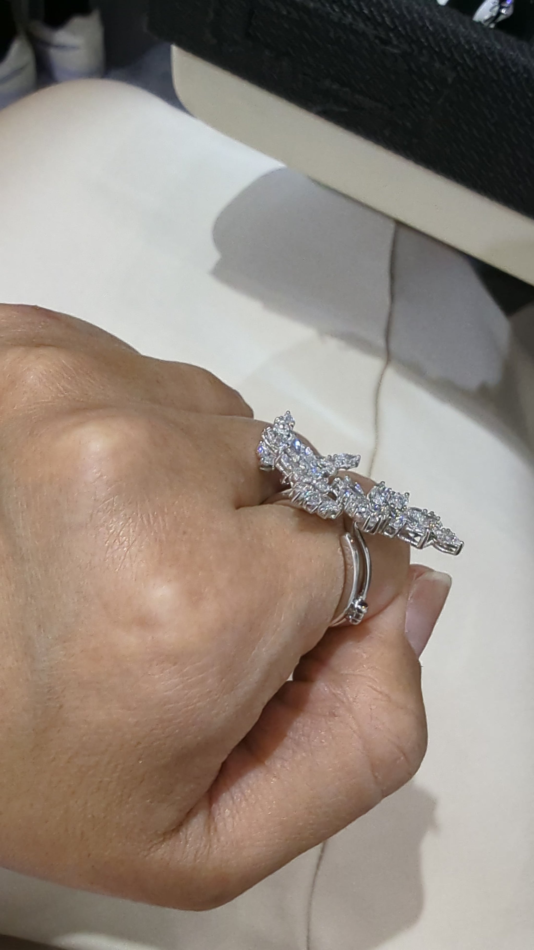 貴女の手の平に止まった約2.9ctの美しい蝶は、形を変えてダブルフィンガーリングにも。変化する姿も楽しみを与えてくれます。